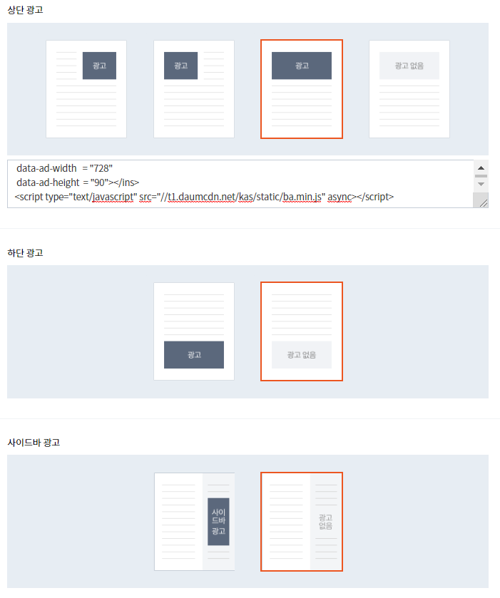 애드센스가 없다면 하단 광고에도 똑같이 삽입하여도 무방하다