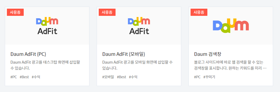그래서 카카오 애드 핏은 티스토리 플로그인에서는 다음 애드 핏으로 설정되어있다.