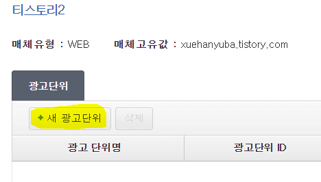매체를 등록해줬다면 새 광고 단위를 클릭해서 광고를 노출시키자