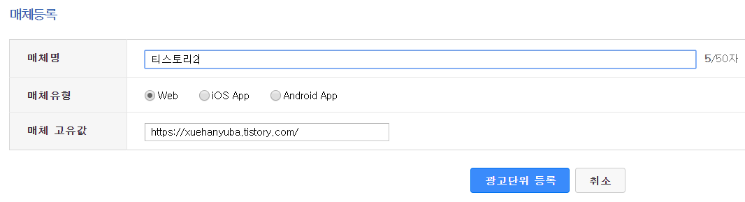 매체 고윳값 - 티스토리 블로그 url을 붙여주면 된다