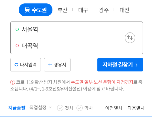 4. 출발역과 도착역을 입력 (왼쪽- 다음 오른쪽 - 네이버)
