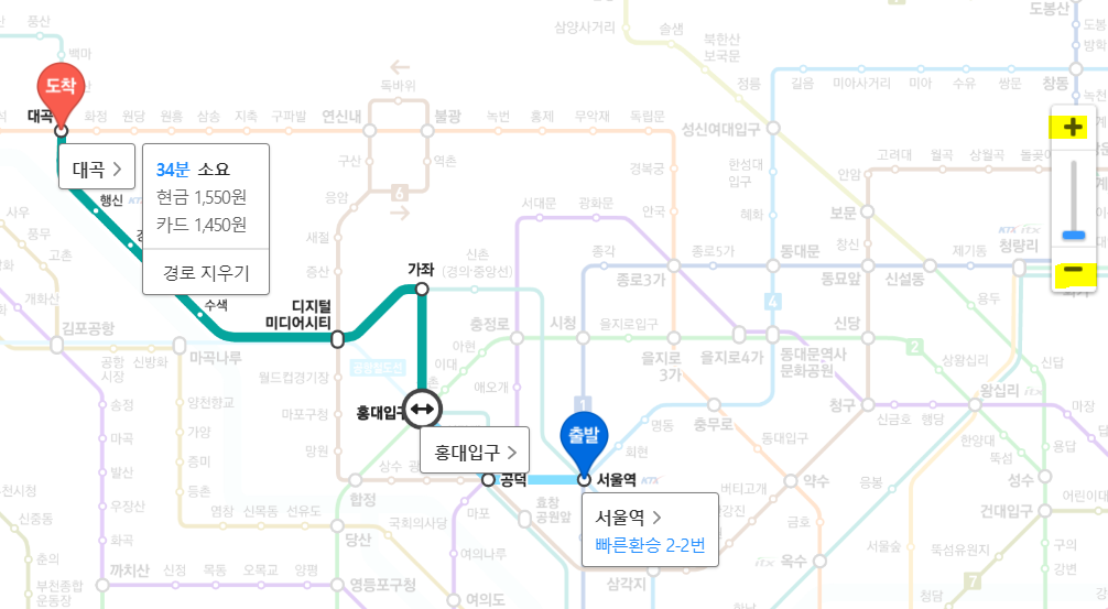 하지만 눈이 침침해서 역이 잘 안 보인다면 + 버튼을 클릭해주면 된다.