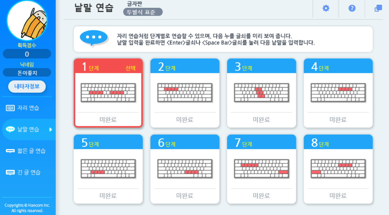 이로써 한컴타자연습 무료다운 및 무료 이용하는 방법은 해결되었습니다.