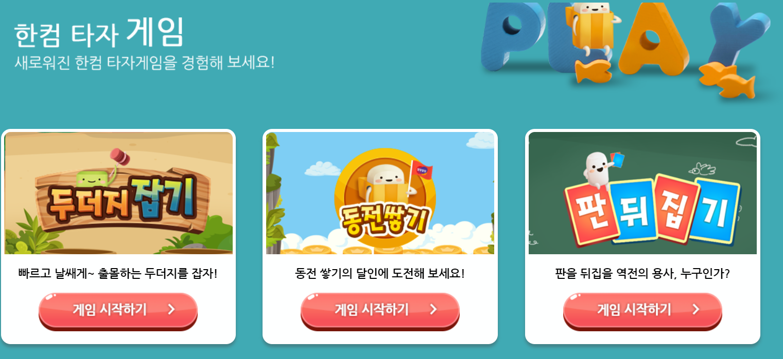 게임마다 처음에 들어갈 때 자세한 내용을 설명해주기 때문에 쉽고 재미있게 타자를 연습할 수 있습니다.