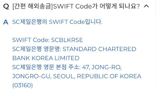 SC제일은행의 SWIFT CODE는 SCBLKRSE이며