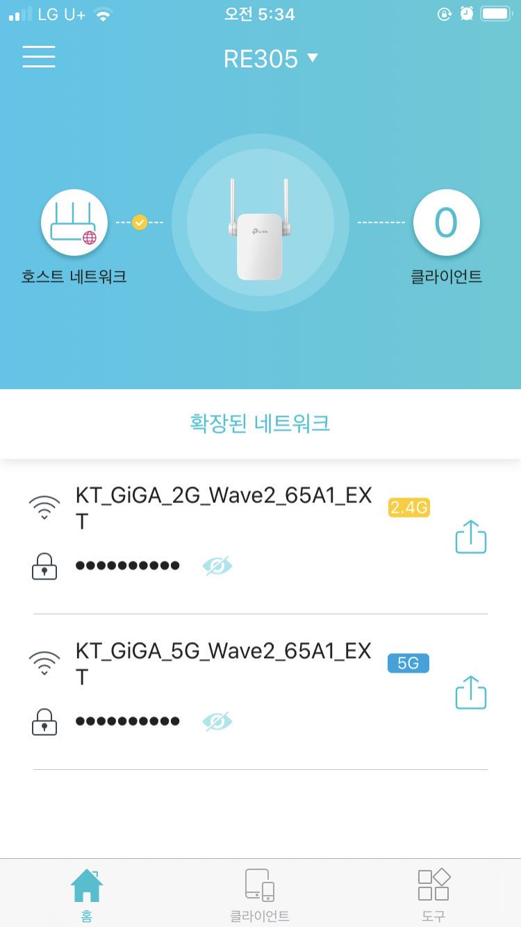 "연결되었음" 클릭 -> RE305에 로그인 중 표시가 나올 것이며 그 후에 자신의 집 와이파이를 선택해서 연결해준 후 RE305의 개인 비밀번호를 설정해주면