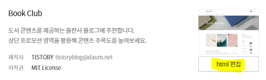 블로그 관리자 페이지 -> 꾸미기 -> 스킨편집 -> html 편집