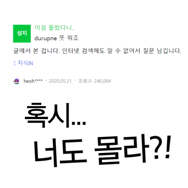 20년 5월 21일에 지식인에 짤막한 글이 올라왔다. "durupne 뜻 뭐죠? 글에서 본 겁니다. 인터넷 검색해도 알 수 없어서 질문 남깁니다."라는 글이었고 답변자의 우문현답이 웃음을 자아냈다.