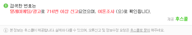 다들 후스콜이나 후후를 잘 사용해서 02 853 8518 전화를 받는 일이 업도록 합시다. 하루빨리 스팸 전화가 없어지는 날이 오면 좋겠네요.