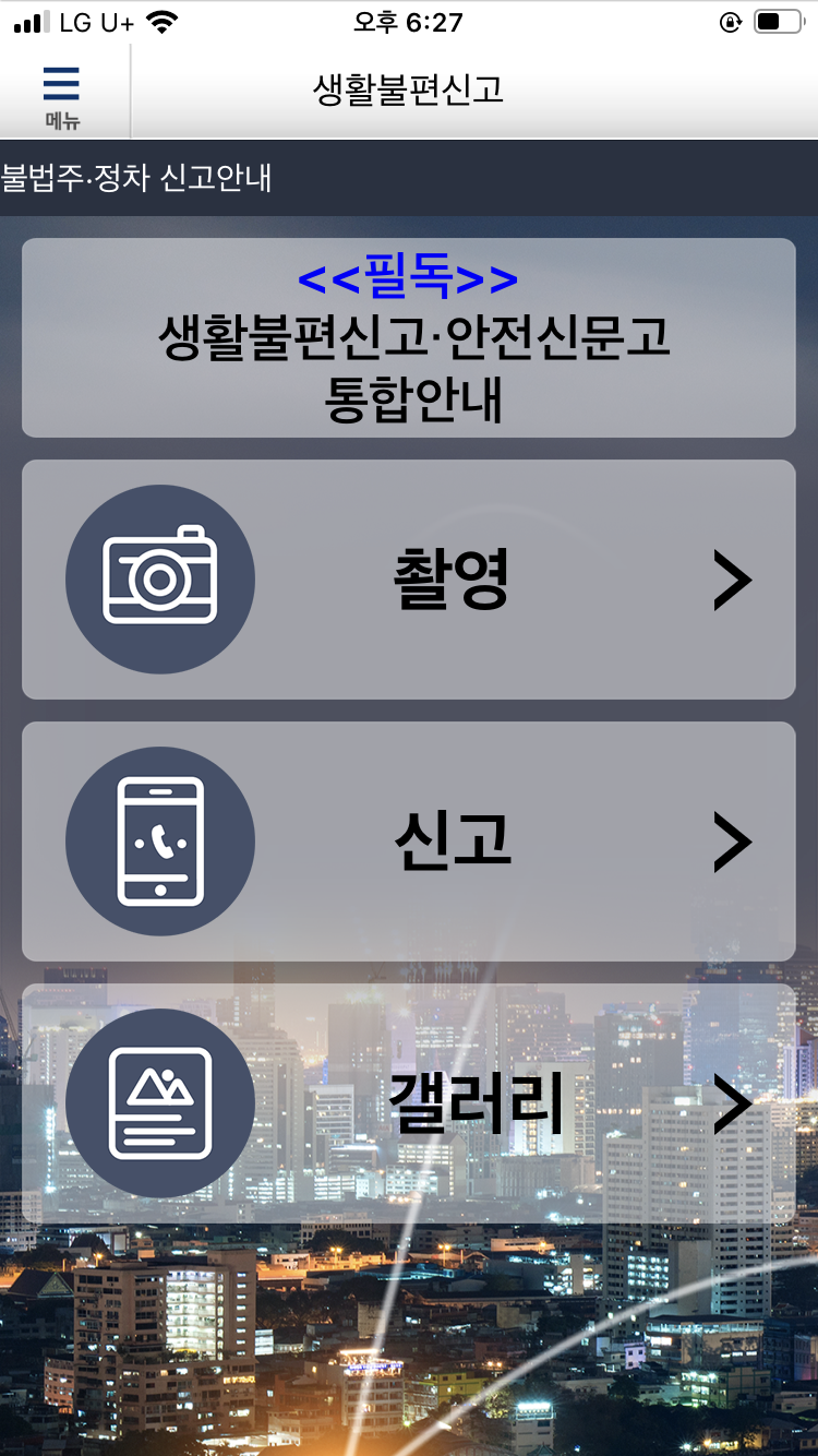 이제 생활불편신고 앱이 있으니 불법 주정차를 신고하는 법을 알아보도록 하자
