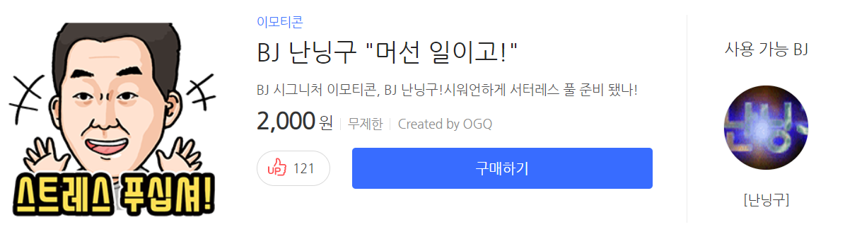 bj난닝구님은 배터랑 아프리카 방송 bj이고, 방송 중에 자주 머선129를 사용했으며