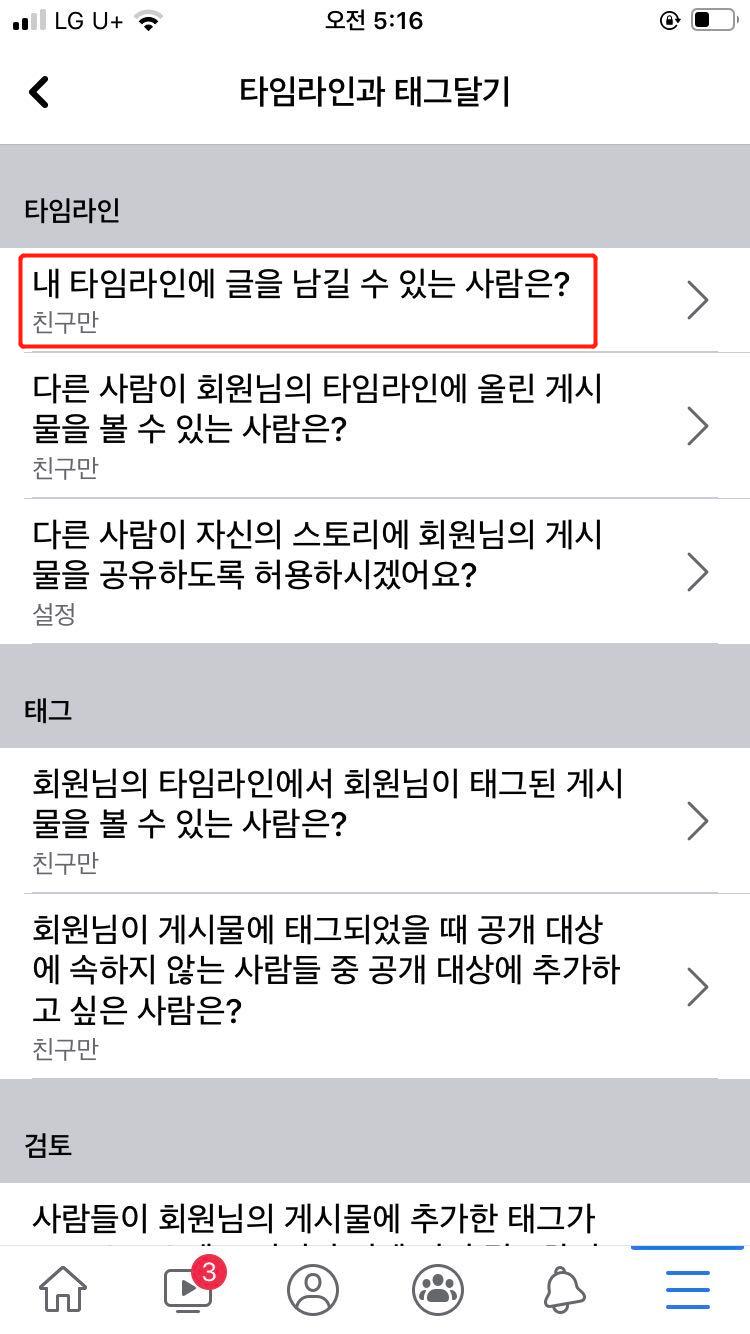 3. 페북 탐라 막기 설정