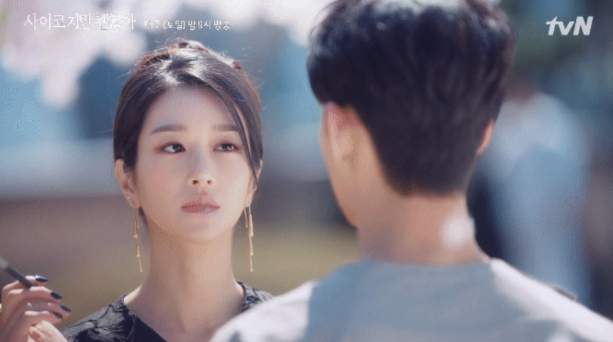 구해줘에서 또한 아주 매력적인 서예지 씨지만 구해줘에서는 아주 수수하며 소녀 같은 느낌을 줬죠. 하지만 이번 사이코지만 괜찮아에서는 사이코 역할을 아주 잘 소화하면서 톡톡 튀는 매력을 발산해주고 있습니다. 그녀는 거침없고 무서운 게 없으며 날카로운 것에 패티쉬를 가지고 있습니다.