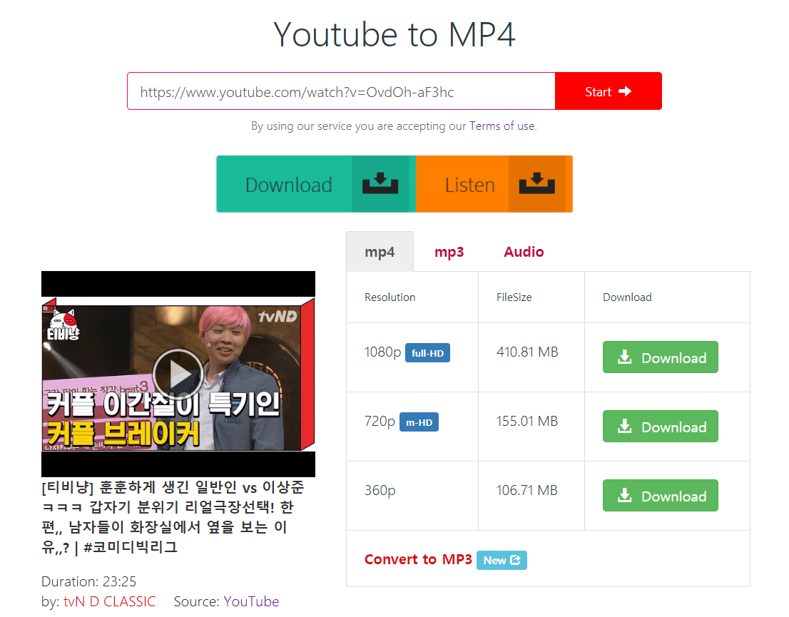 다운로드하고 싶은 유튜브에 들어가서 주소를 복사 후 Youtube to MP4에 붙여 넣기를 한 후 시작 버튼을 클릭해주시기만 하면 됩니다.