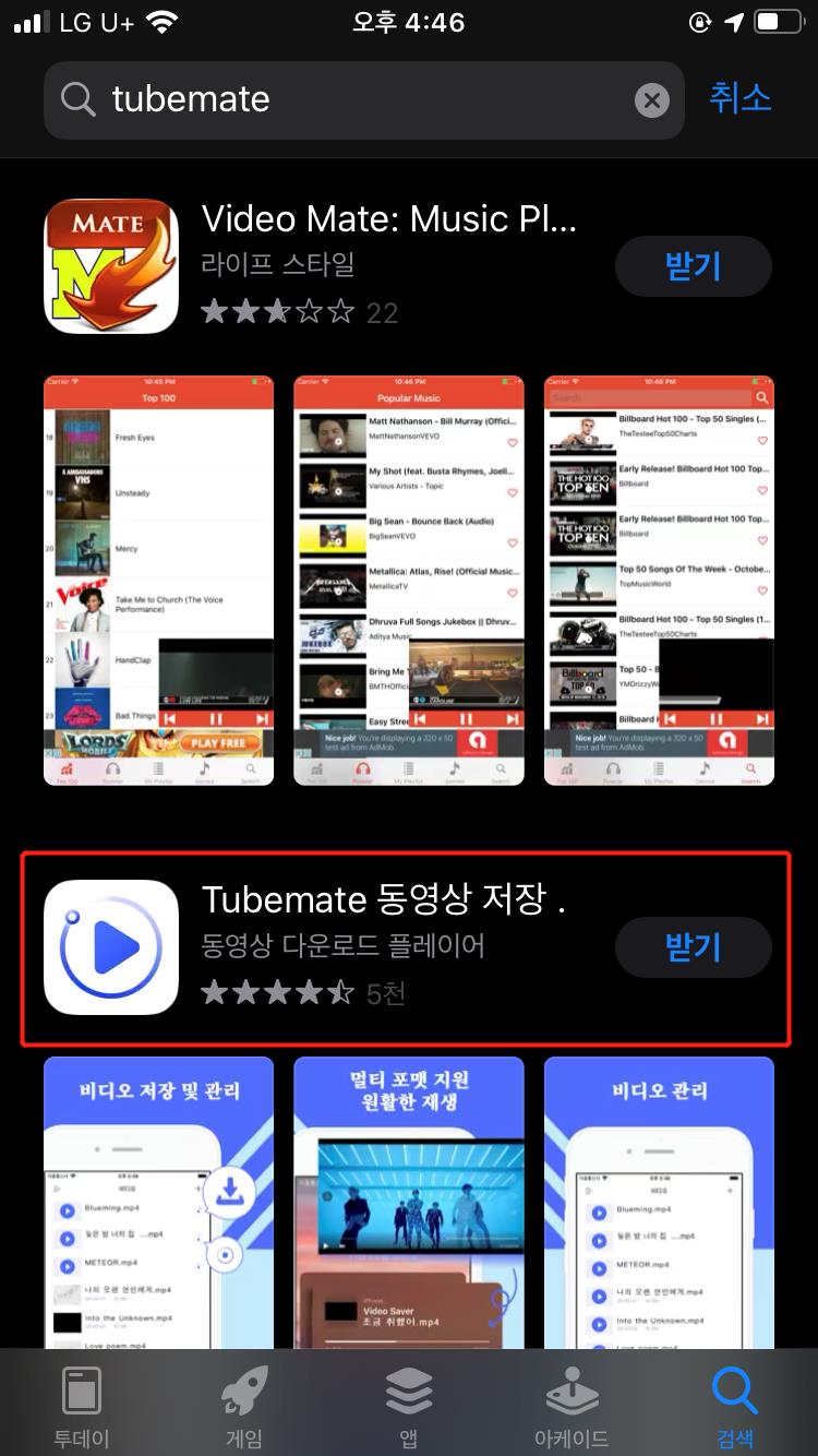 저희가 이용할 어플은 tubemate입니다.
