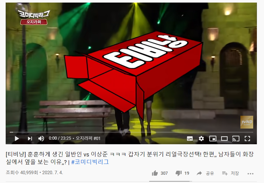 먼저 제가 즐겨보는 오지라퍼를 예시로 들어보겠습니다. 유튜브 화면에 들어가신 후 전체 화면으로 만들기 전에