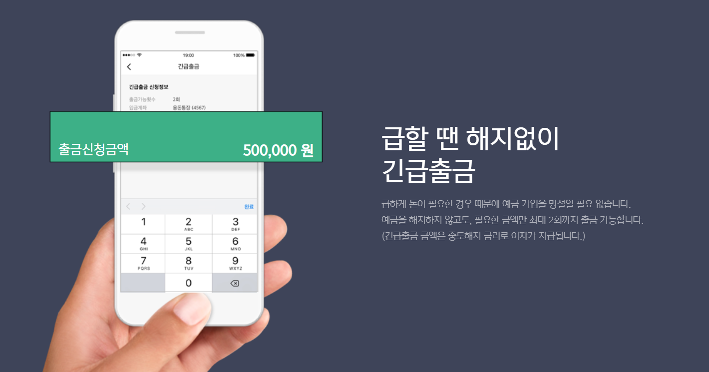 1개월부터 예금이 가능하며 급할 때는 2번까지 해지 없이 긴급 출금 또한 가능하다고 합니다.