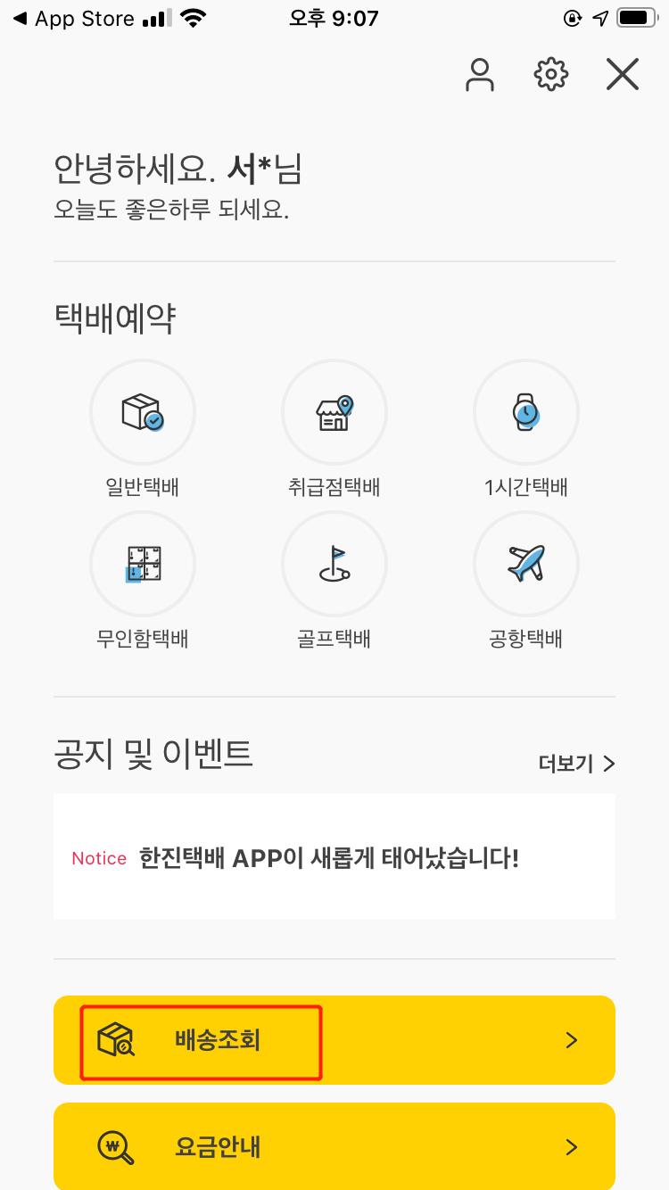 한진 택배를 예시로 들어서 설명드리겠습니다.