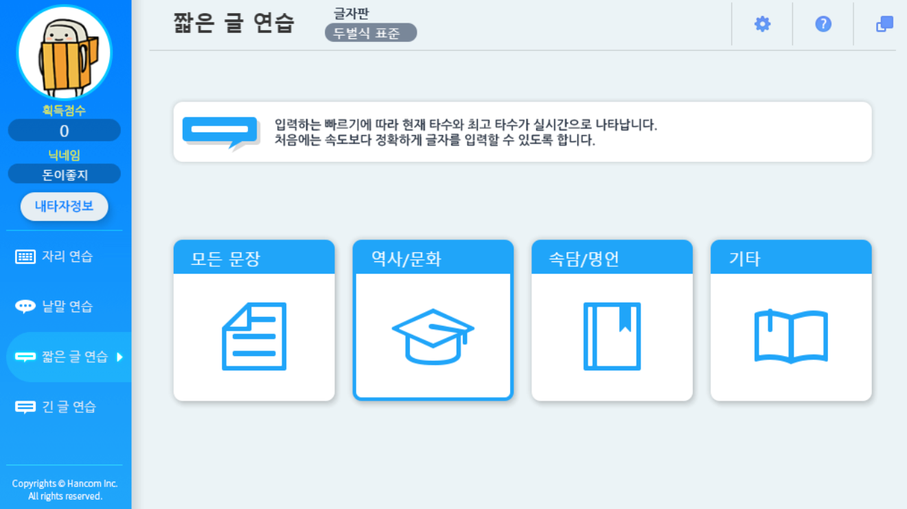 그럼 이제 새로워진 한컴타자연습의 기능 등을 알아보도록 하겠습니다.