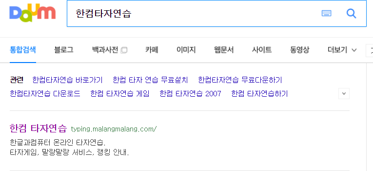 이제 한컴타자 연습을 하는 법은 알았지만 매번 제 블로그에 찾아오셔서 바로가기를 클릭하실 필요가 없이 네이버나 다음에 검색을 통해서도 들어가실 수 있습니다.