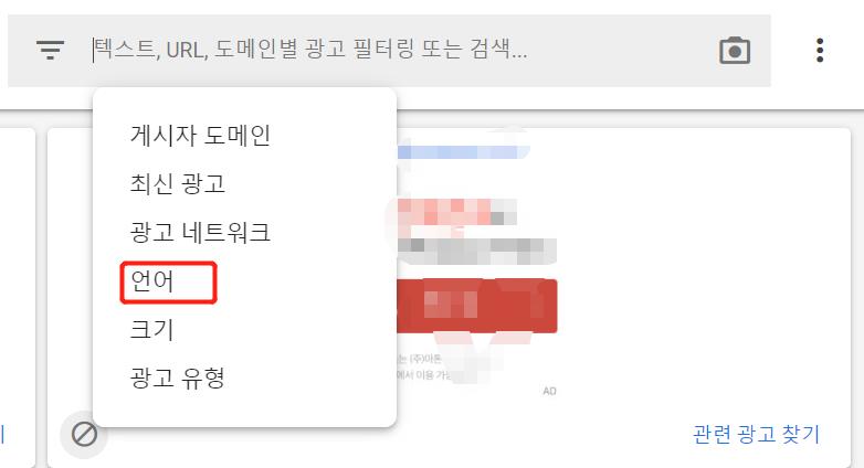 4. 영어나 차단하고 싶은 광고의 언어를 클릭