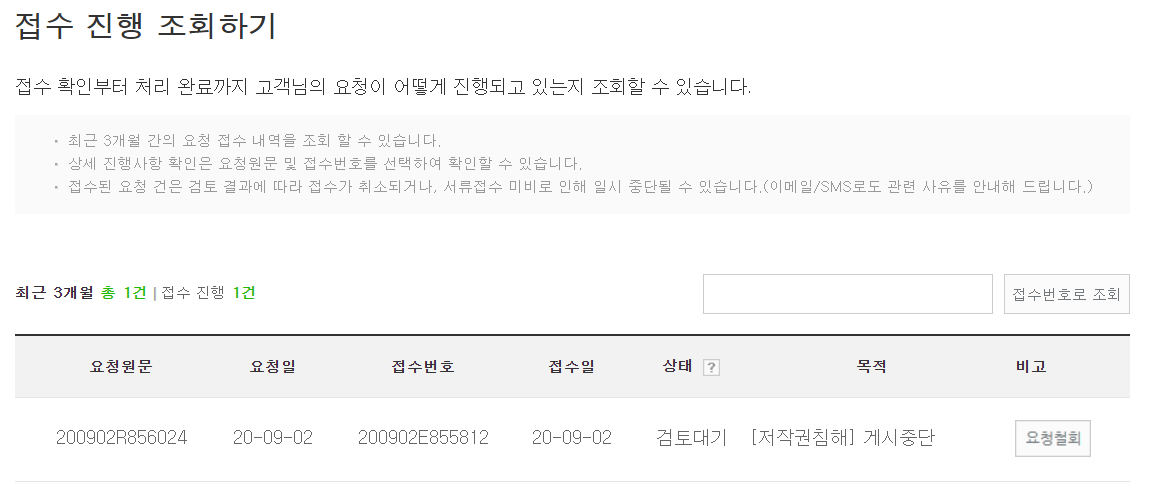 접수를 하고 나면 이렇게 바로 접수 현황을 알 수 있습니다.