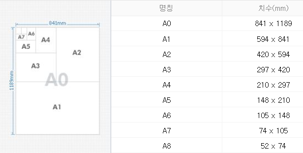 A열은 A0~A10까지 있는데 숫자가 높아질 수록 크기는 점점 더 작아집니다.