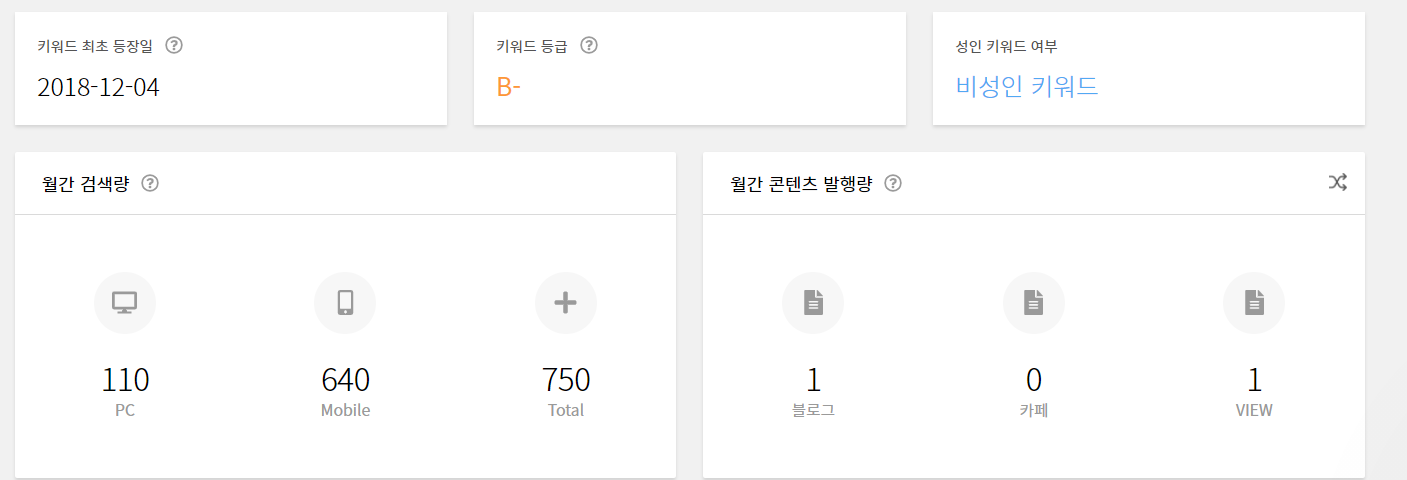 바로 이런 키워드가 필요한 것이다. 성인 키워드는 위험성이 있기 때문에 지향해야 하며 월간 검 생량은 20만 넘으면 된다. 20은 사실상 아무도 검색하지 않는 키워드 이기 때문이다. 이 키워드는 필자가 찾은 키워드인데 필자가 적기 전에는 블로그 도 VIEW도 0이었다. 지금은 1이니 이 키워드를 보는 사람의 대부분 모두 필자의 블로그를 읽을 수밖에 없다. 블로그 초보자에게 달에 700명의 방문자 또한 적다고 할 수 없다. 그러니 블로거 초보자들은 이러한 키워드를 많이 찾아서 포스팅을 해야 하고 블로거 고수들은 이런 포스팅을 많이 하기 때문에 이웃을 만들지 않는 것이다. 그렇지 않으면 힘들게 찾은 키워드를 블로그 이웃들이 보고 따라 작성하게 될 수 있기 때문이다.