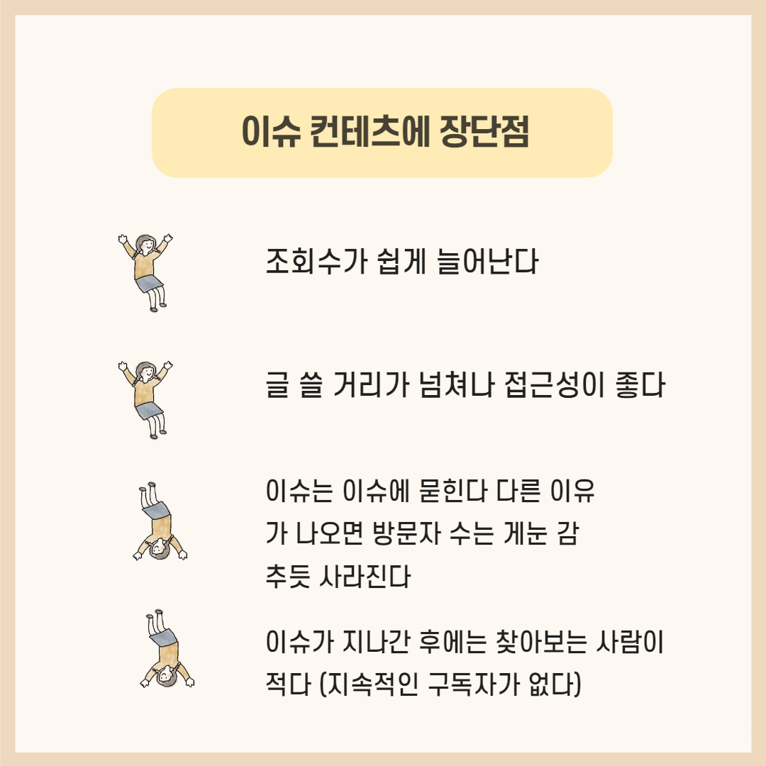 가장 큰 단점은 한 번 이슈가 지나가면 거의 보는 사람이 없다는 정도겠네요