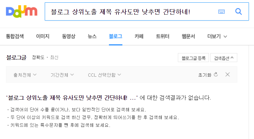 제목을 정하고 그 제목을 직접 다음이나 네이버에 검색해보시면 됩니다