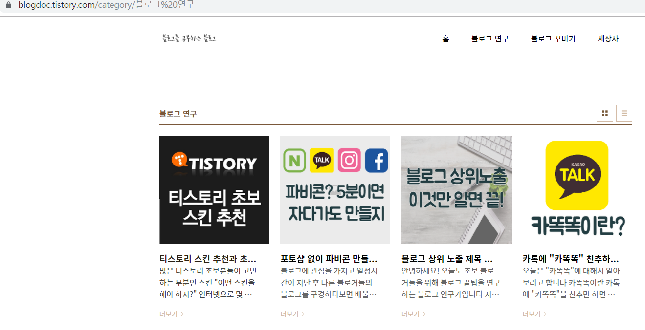 블로그 연구를 클릭하면 저렇게 블로그 연구 카테고리의 글만 나오게 됩니다