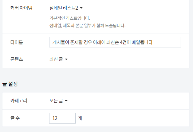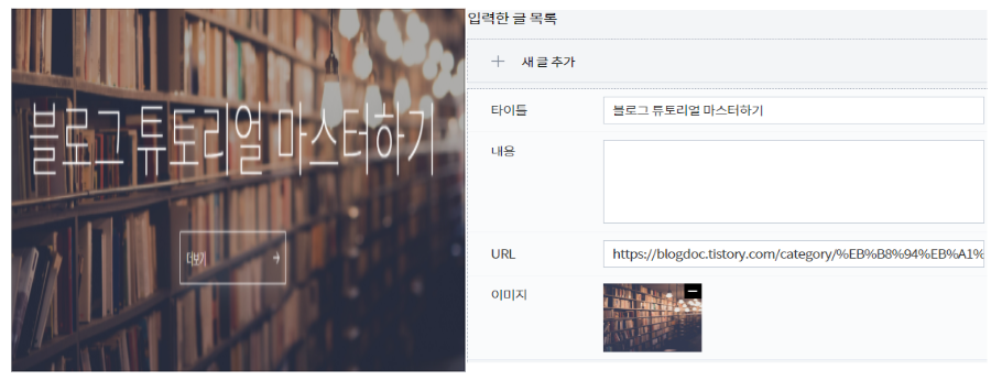 직접 입력 또한 할 수 있지만 저는 그냥 귀찮아서 최신 글을 사용하고 있습니다