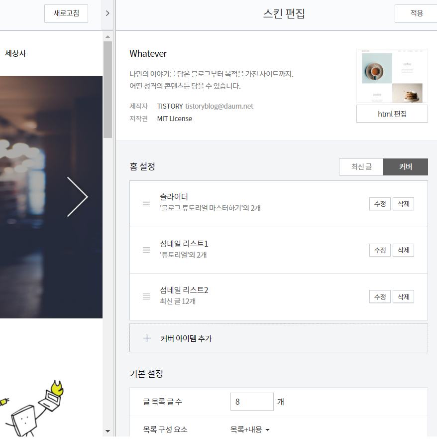 오늘은 저번 포스팅에 이어서 Whatever 스킨 편집을 포스팅하려고 합니다