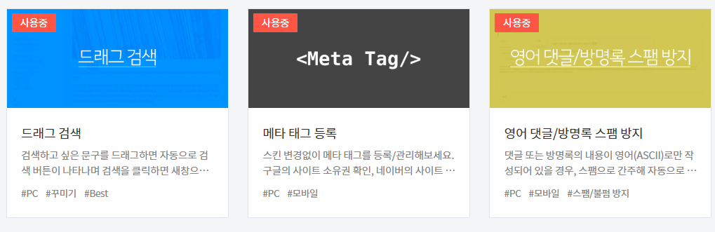 블로그 관리자 페이지 -> 플러그인 -> 메타 태그 등록을 클릭