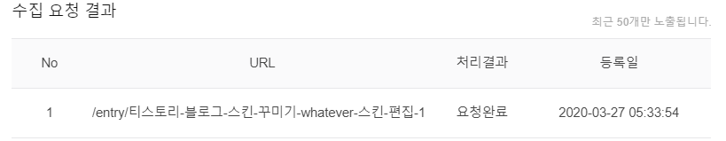자신의 작성한 글을 클릭하여 상단의 자신의 글 주소를 com/ 뒤로 복사하여 웹페이지 수집에 입력하면