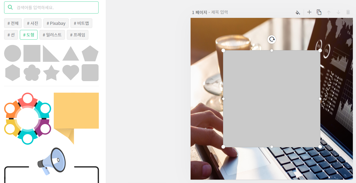 그 후 검색어를 지우고 #도형을 클릭해 사각형을 줍니다