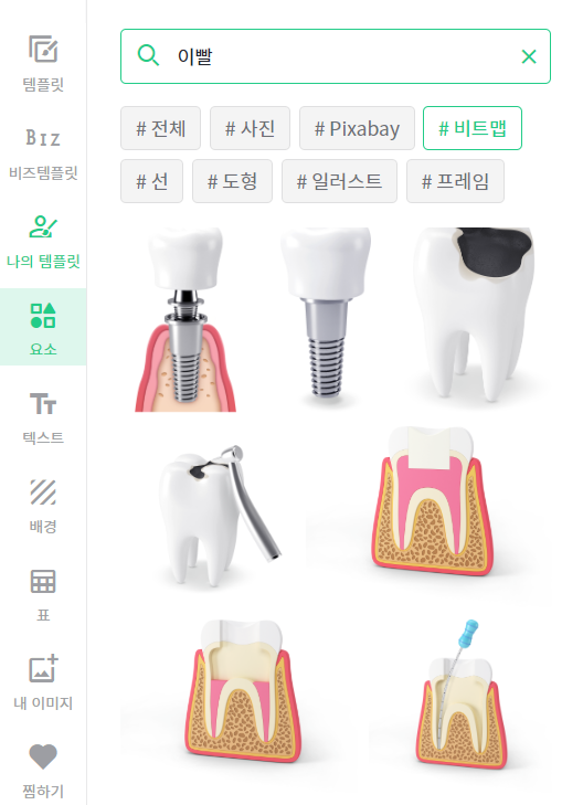 그러면 이렇게 이미 잘 만들어진 썸네일들이 이미 있죠 그럼 그중에서 자신의 글의 내용과 짜집기를 할 수 있는 썸네일을 찾아봅시다 예를 들어 내가 쓰는 글이 "신경치료"다
