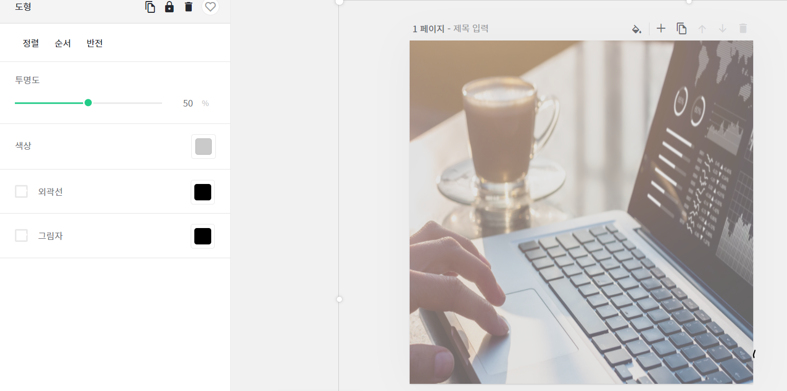 그 후 도형의 투명도를 35~50% 정도로 설정을 해주면 배경이 완성됩니다