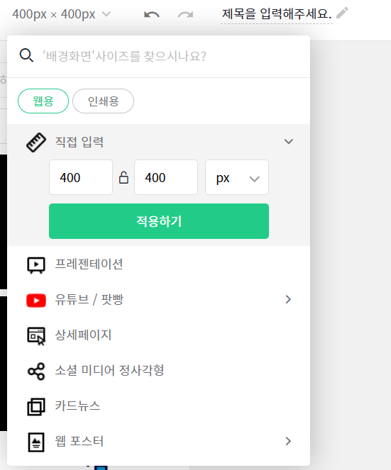그럼 이렇게 직접 입력란이 나오고 원하는 사이즈를 적어주시면 됩니다