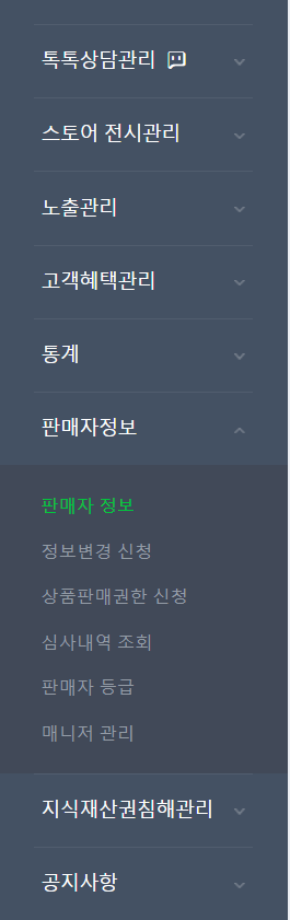 가입이 완료됐다면 우리가 원하는 자료는 다 모아졌다 스마트 스토어 왼쪽 하단 판매자 정보에 들어가자