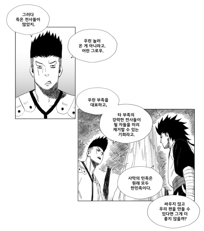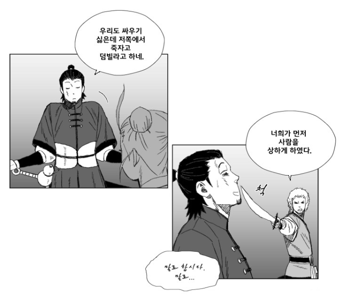 흑백 웹툰이 된 후부터 그림체가 더욱 견고 해지며 무협만의 특색을 저 잘 표현되어 더욱 빠져들게 되는 웹툰입니다.